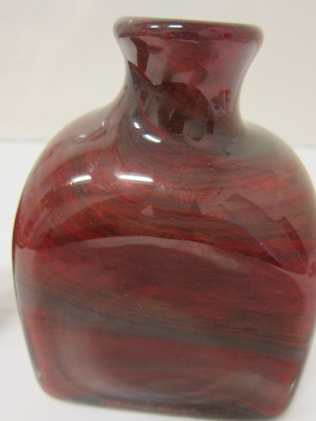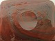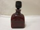 Unika karaffel i kraftigt, smukt mundblæst, let flammet glas i "mørk rav"-farve og lidt rød/lilla farve