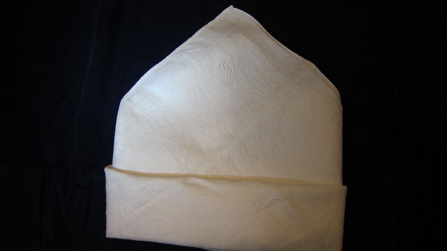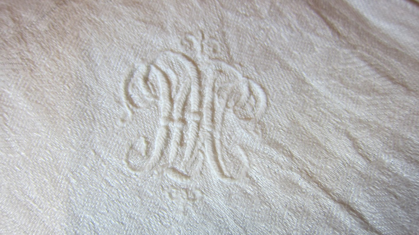 Mundservietter fra gammel tid af hør med smukt broderede initialer