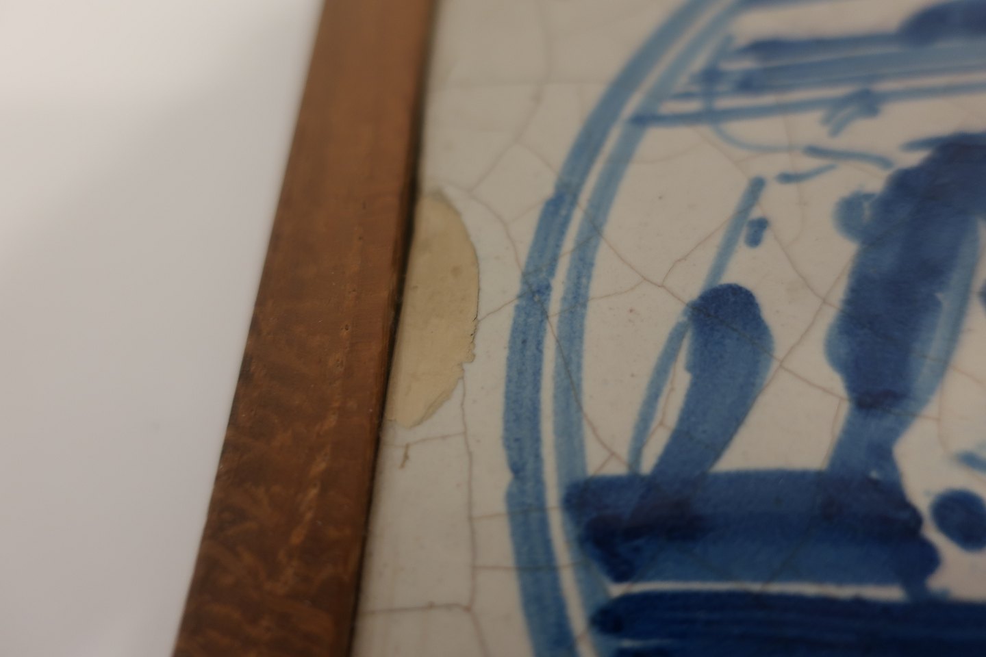 Fliser Hollandske vægfliser Fra 1800-1850 13cm x 13cm hver flise 4 stk i ramme (28cm x 28cm) Andre fliser haves også Kontakt os for mere information Varenr. 6133