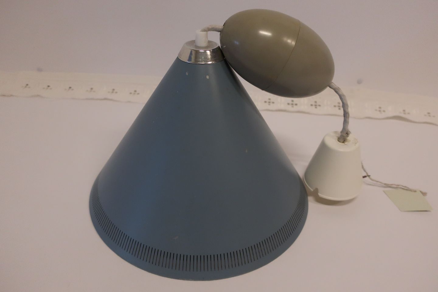 Retro Loftspendel/ - lampe med hejs Malet metal, lys blå God stand i forhold til alder, Fungerer Varenr.: 3177