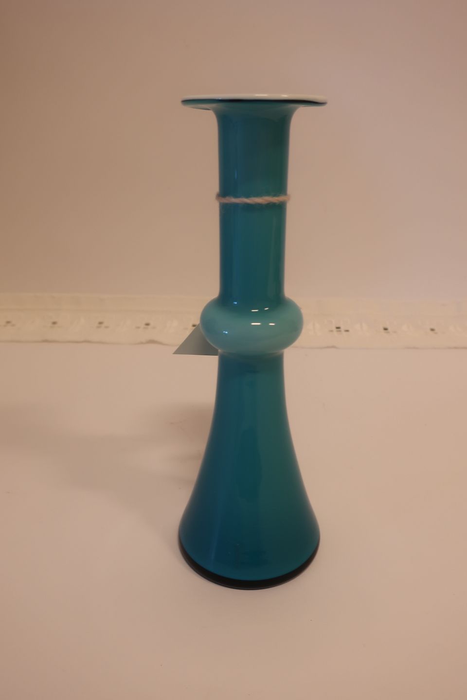 Carnaby Vase fra Holmegaard / Fyns Glasværk Turkis blå med inderside af opal hvidt glas Design: Per Lütken (1916-1998) Produceret i perioden 1968 - 1976 H: 21cm Flot stand Varenr.: 910113