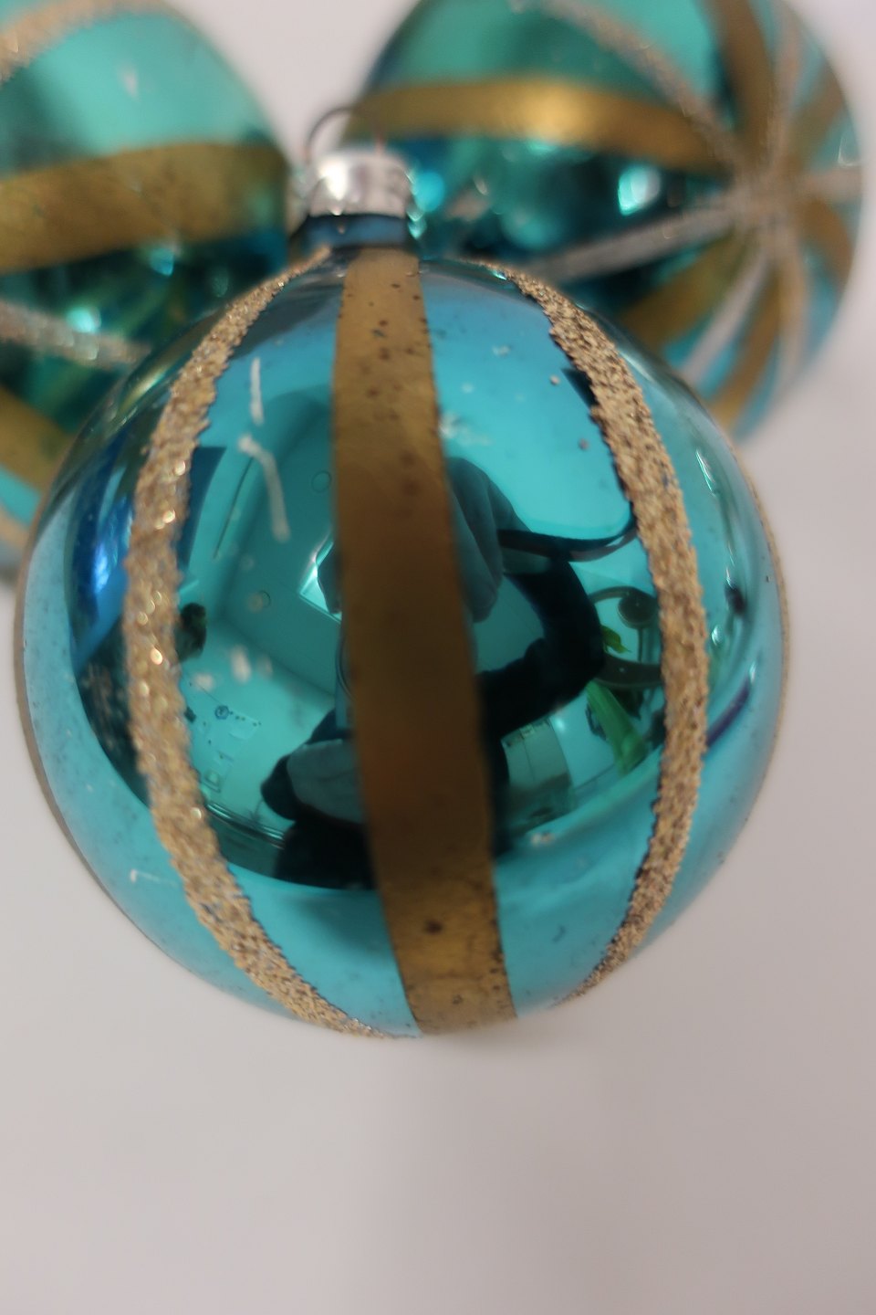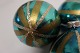 Julekugler af glas Samlet pris for 3 stk. Gamle smukke kugler i blå-/grønfarvede med guld og "sne" God og hel stand Varenr.: 4-020112v