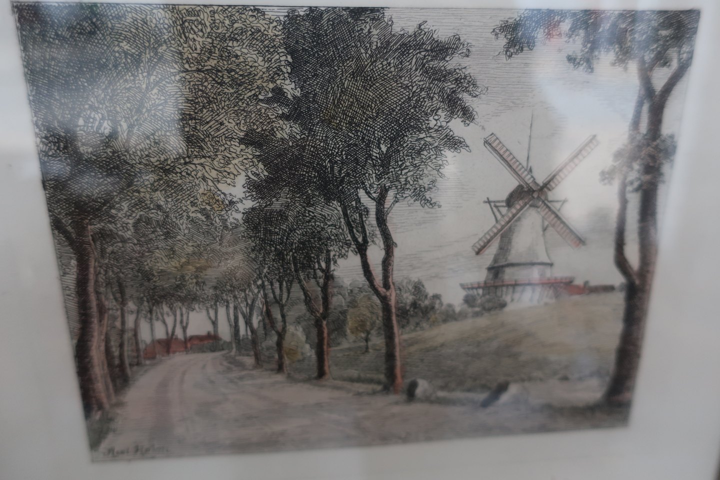 Dybbøl Mølle Koloreret radering, indrammet i gammel ramme Af Axel Holm (1861-1935) Signeret Fra ca. 1920 Mål: 24,5cm x 29cm Varenr.: 4-81119