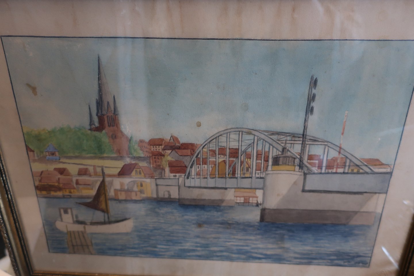 Akvarel af Sønderborg Gammel bro i den gamle ramme