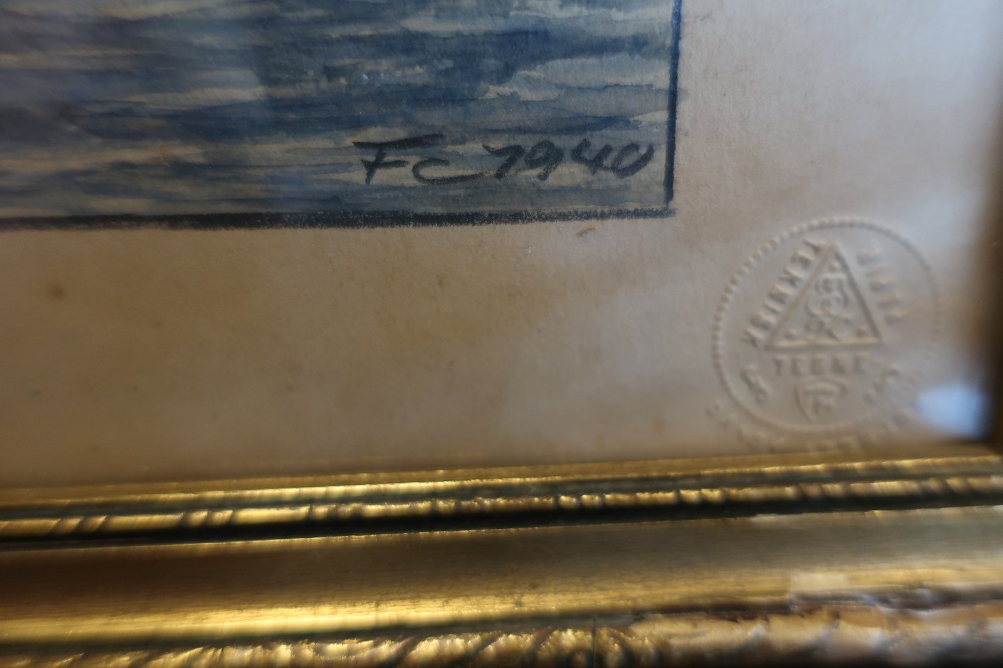 Akvarel af Sønderborg Gammel bro i den originale gamle ramme, dog restaureret med nyere tape og nyt ophæng