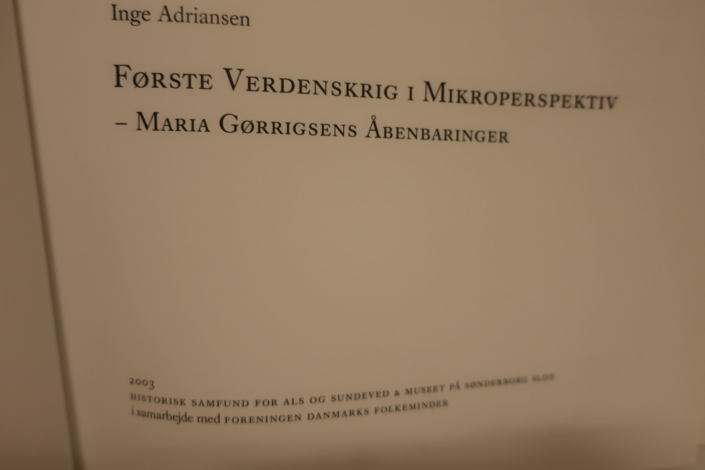 Første Verdenskrig i Mikroperspektiv - Maria Gørrigsens Åbenbaringer Inge Adriansen og Sønderborg Slot 2003 Rigtig god stand Varenr.: 1006-11291