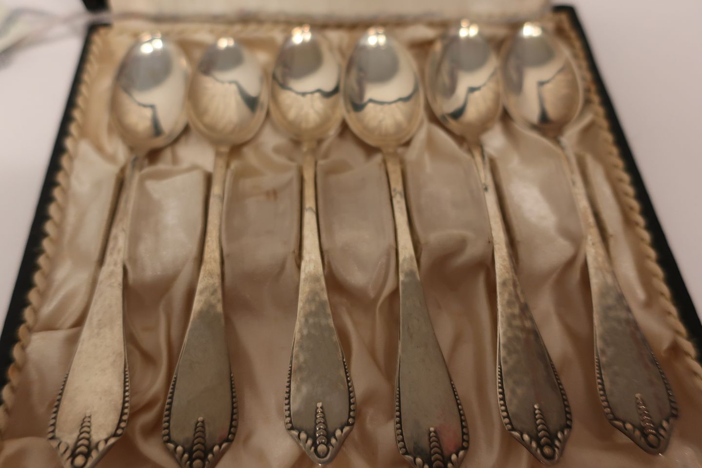 Tretårnet sølv teskeer, 6 stk. med meget smukt mønster