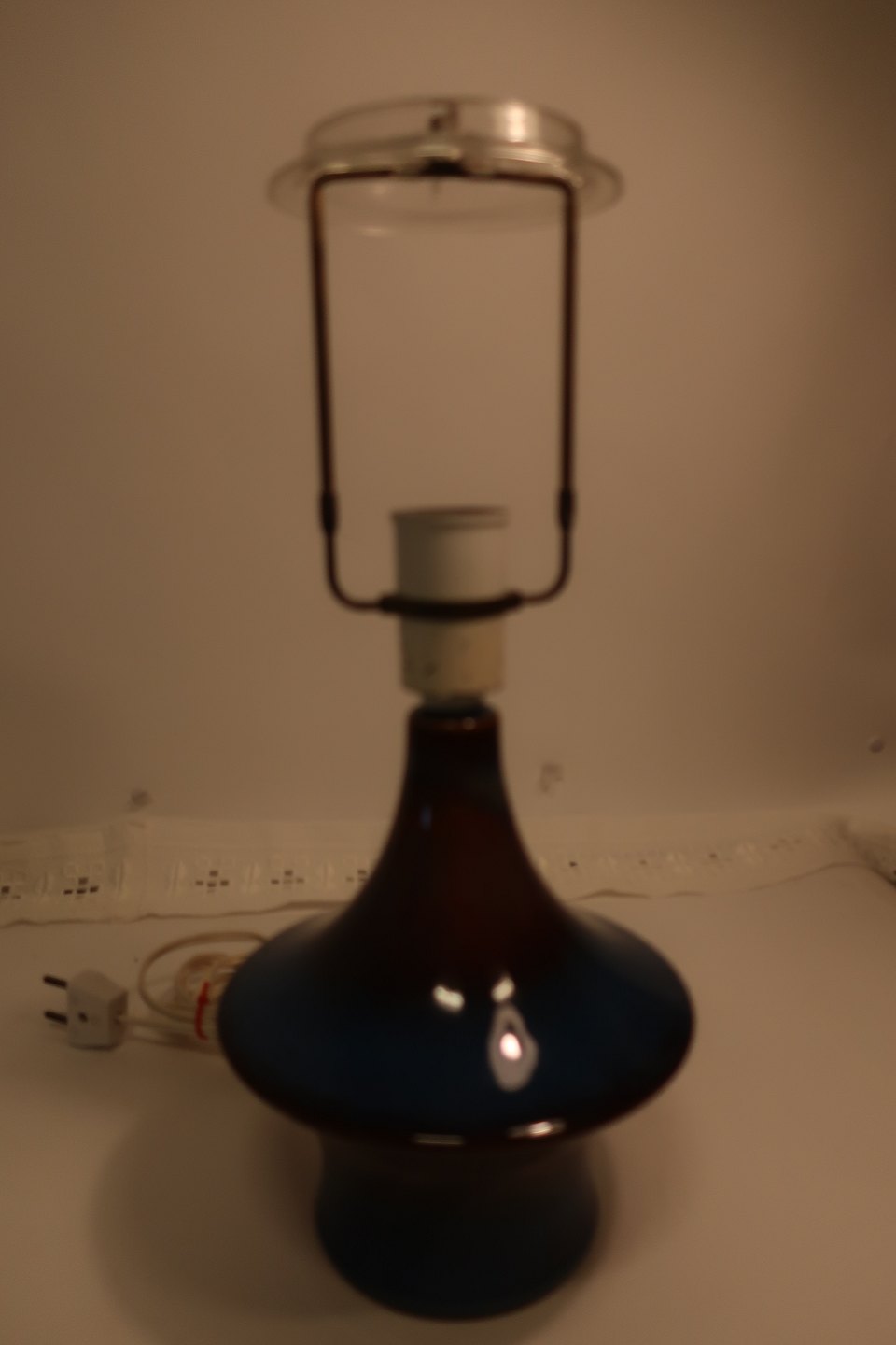 Tablelamp Søholm tablelamp made of keramik Blue and dark brown Model: 1066 Stamp: Søholm stentøj, Denmark, 1066 H: 27cm Excl. stander Articleno.: 4-120111