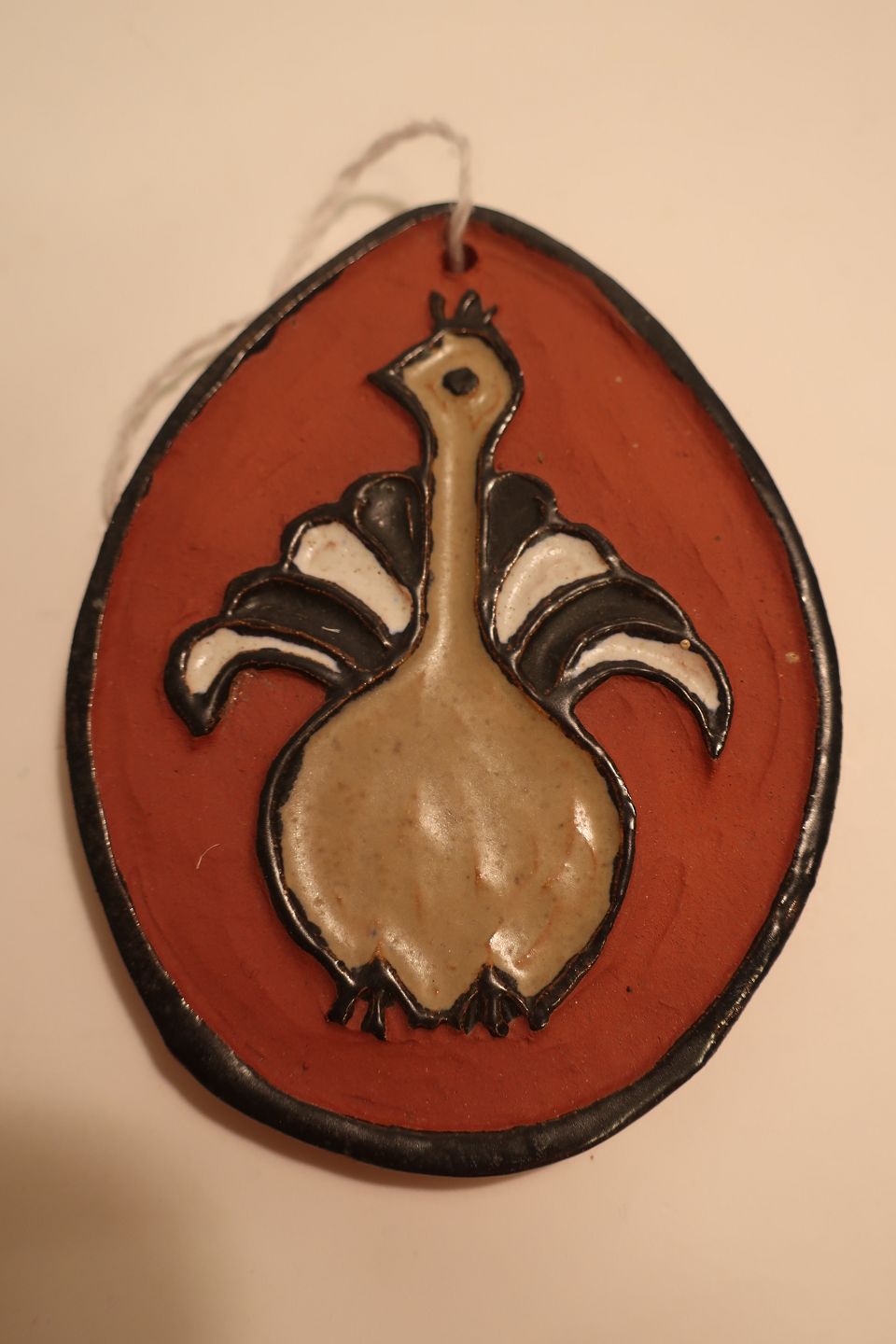 Dråbe - Påfugl - Keramik af Hildegon den kendte keramiker fra Als i Sønderjylland. Dråberne blev udført med mange forskellige motiver.