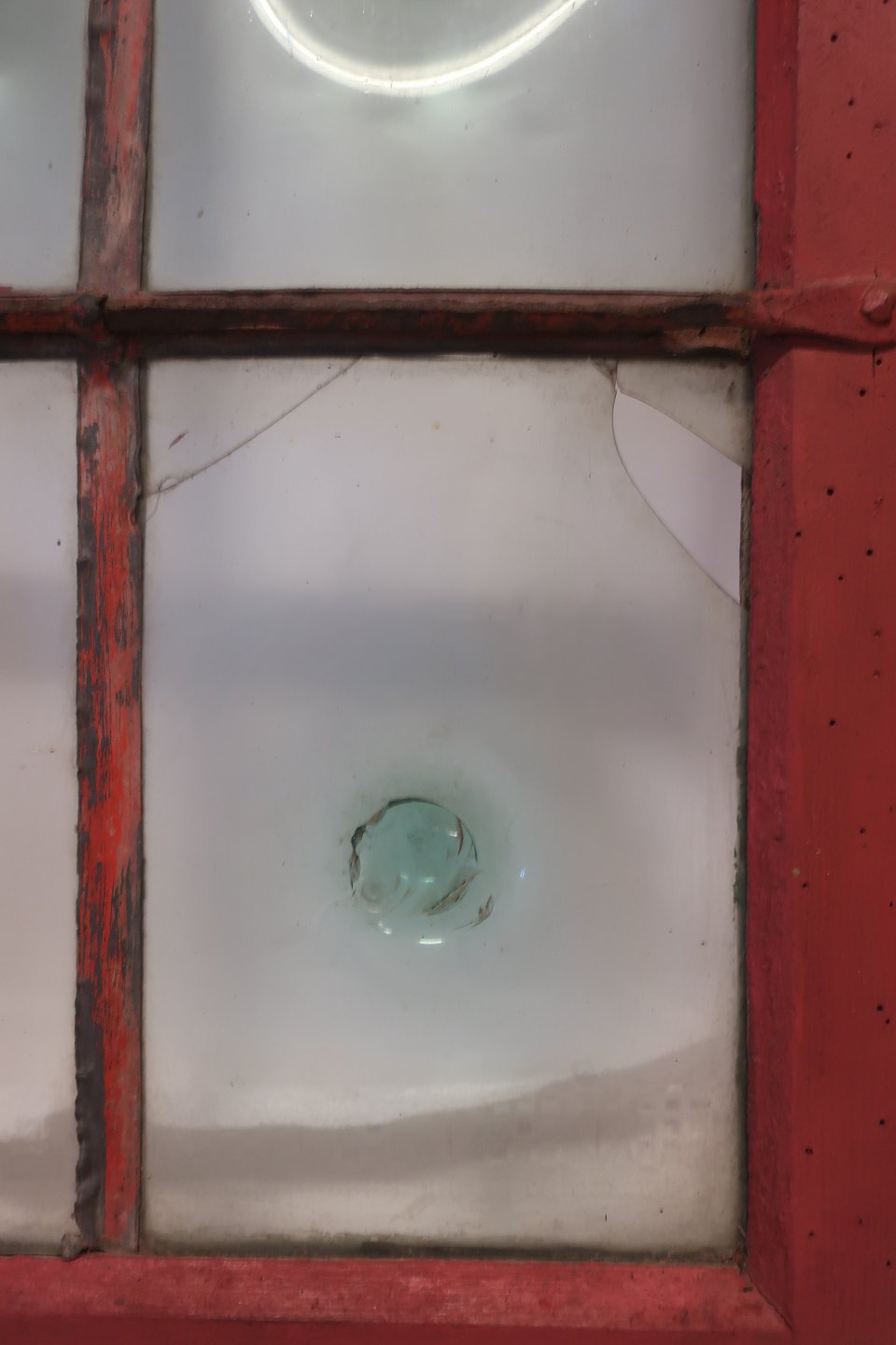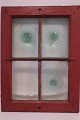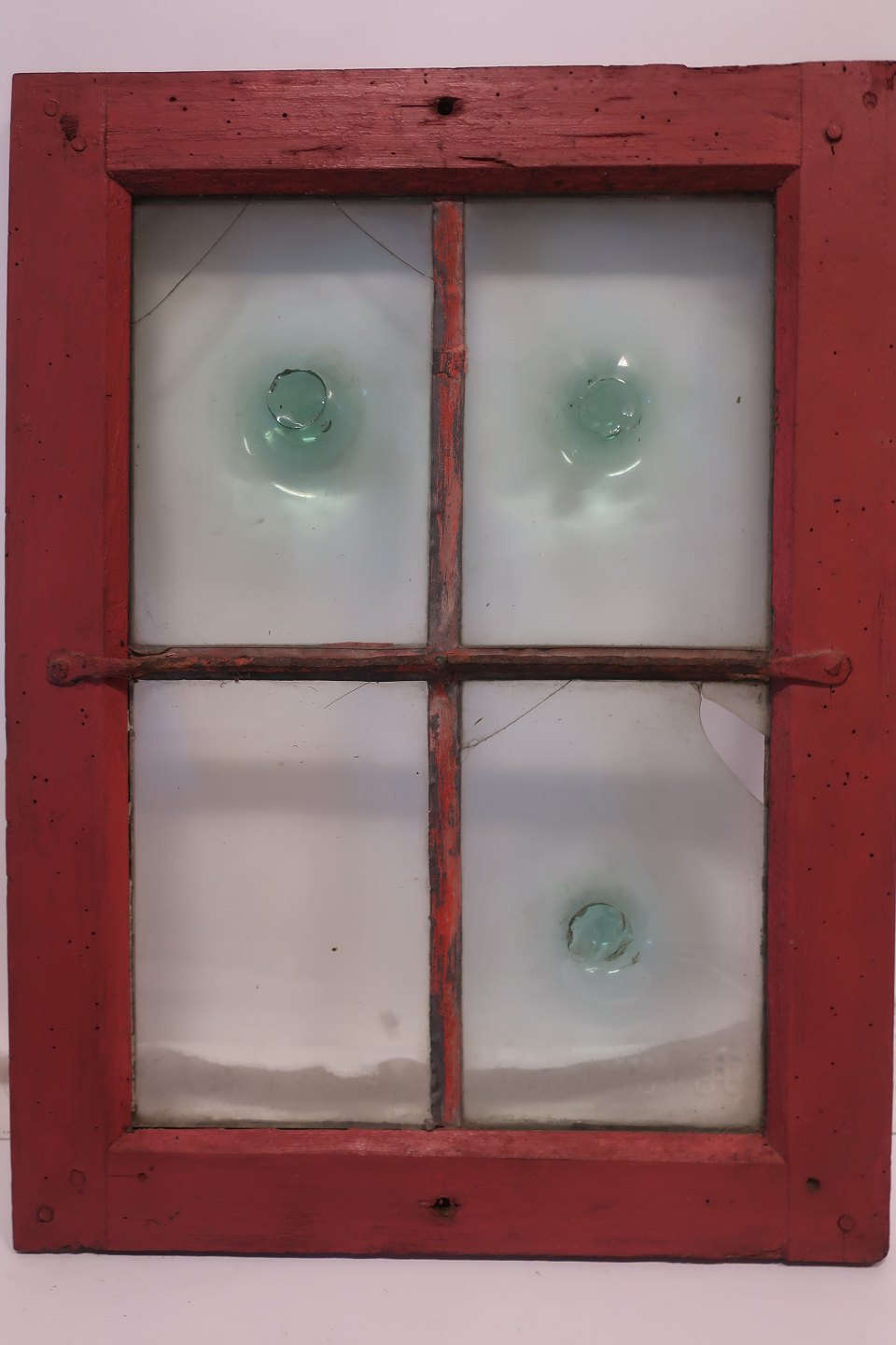 Vindue med 3 stk. flaskebundsglas (samt et almindeligt, men gammelt glas)