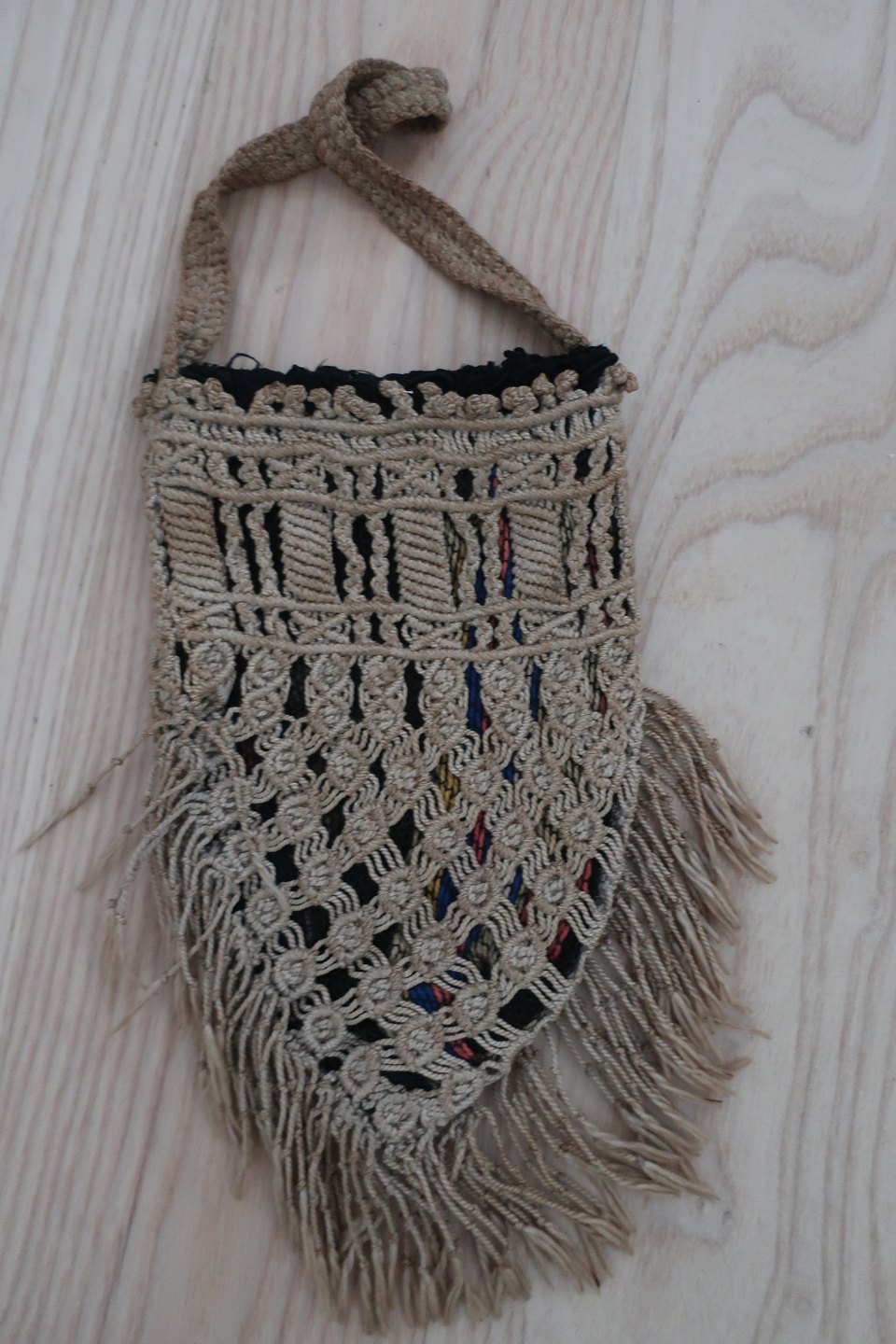 Antik smuk gammel håndtaske håndlavet af hør, hvor hørfarven er bevaret
