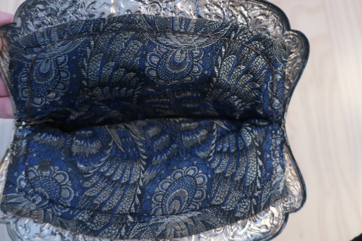 Indvendig er der foret med flot stof, som virkelig passer til taskens dekoration