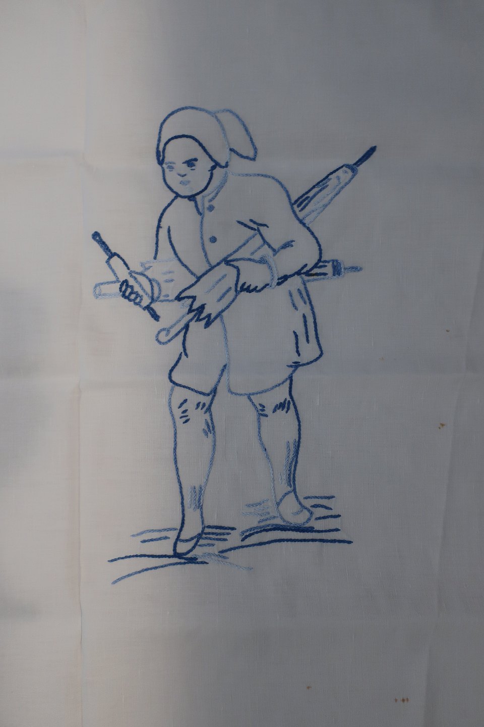 The antique, Danish linen and fustian is our speciality and we always have a large choice of tea towels, table clothes, napkin etc.