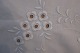 Smukt gammelt paradestykke med hvidt håndbroderi, hulmønster