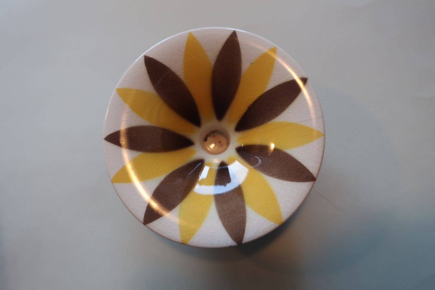 Candlestick from Aluminia, Denmark Stamp: 2852, "A" for Aluminia, INA, Denmark Diam. about: 7,5cm In a good condition Articleno.: L1006