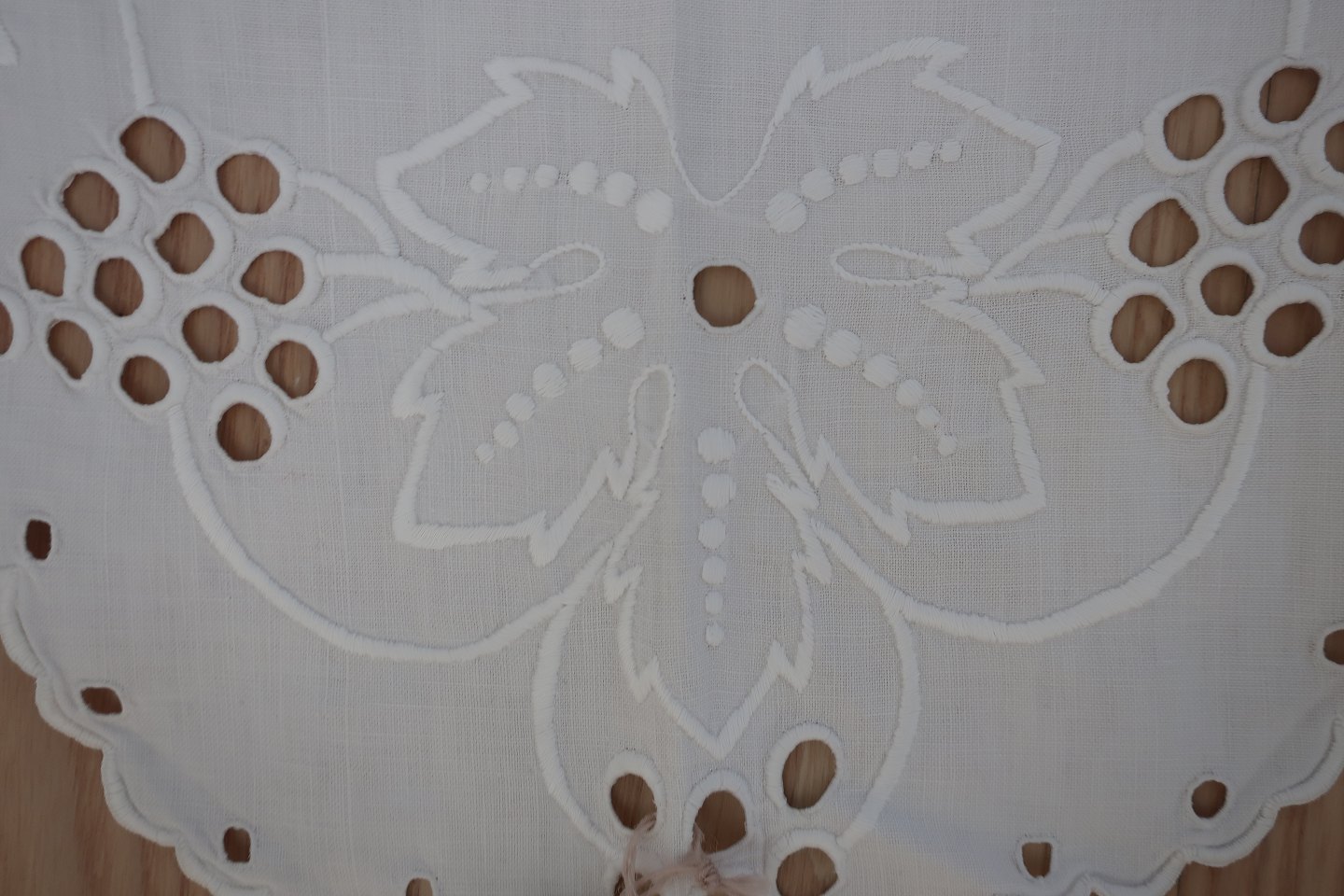 Smukt gammelt broderet stykke med hvidt håndbroderi