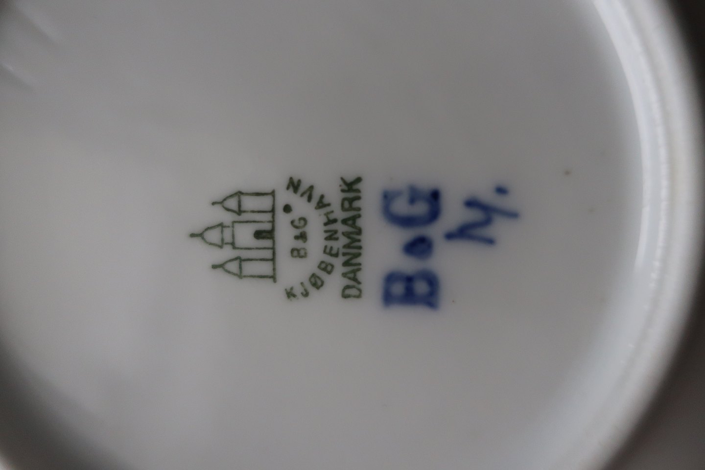B&G, Bing & Grøndahl Blå Nellike Jubilæumsstel Design: Hans Tegner, 1928 Underkopper Diameter: 14,5cm Flot stand Haves: 6 stk. Varenr.: KL1006
