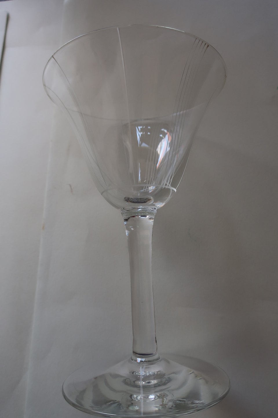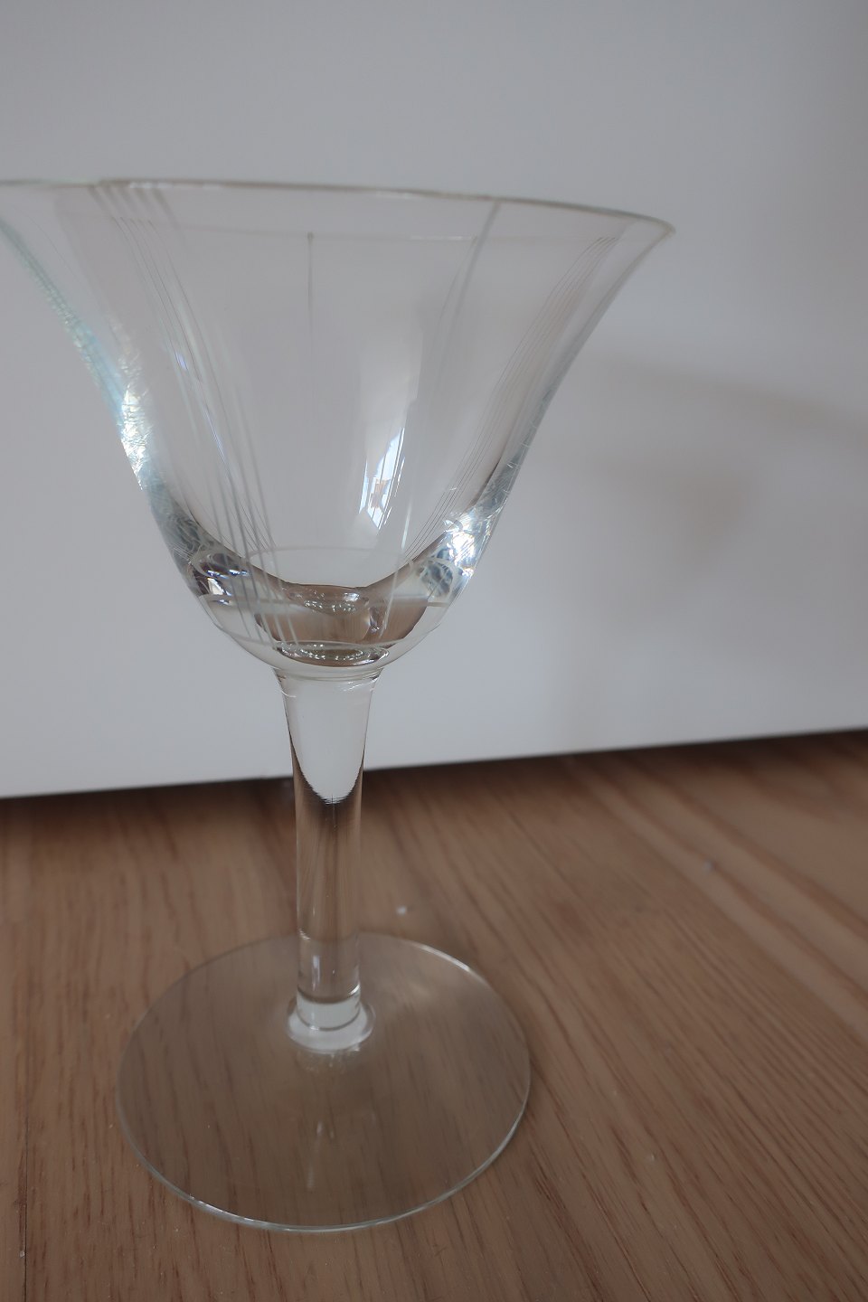 Hvidvinsglas Holmegaard Glasværk Birkholm glas Design Per Lütken Klokkeformet kumme med de matte striber 1942 H: ca. 13cm 12 stk. Pris pr. stk. = DKK 90,- Samlet pris for alle 12 glas DKK 900,- Flot stand Varenr.: KM1005
