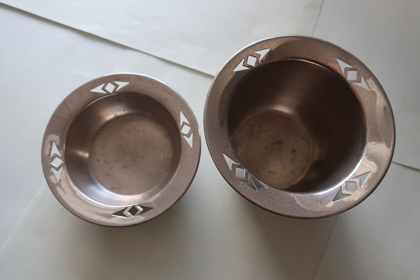 Gammelt sæt med bakke samt 2 små skåle i 2 størrelser Smukt og enkelt udsmykket God stand Varenr.: KM1005