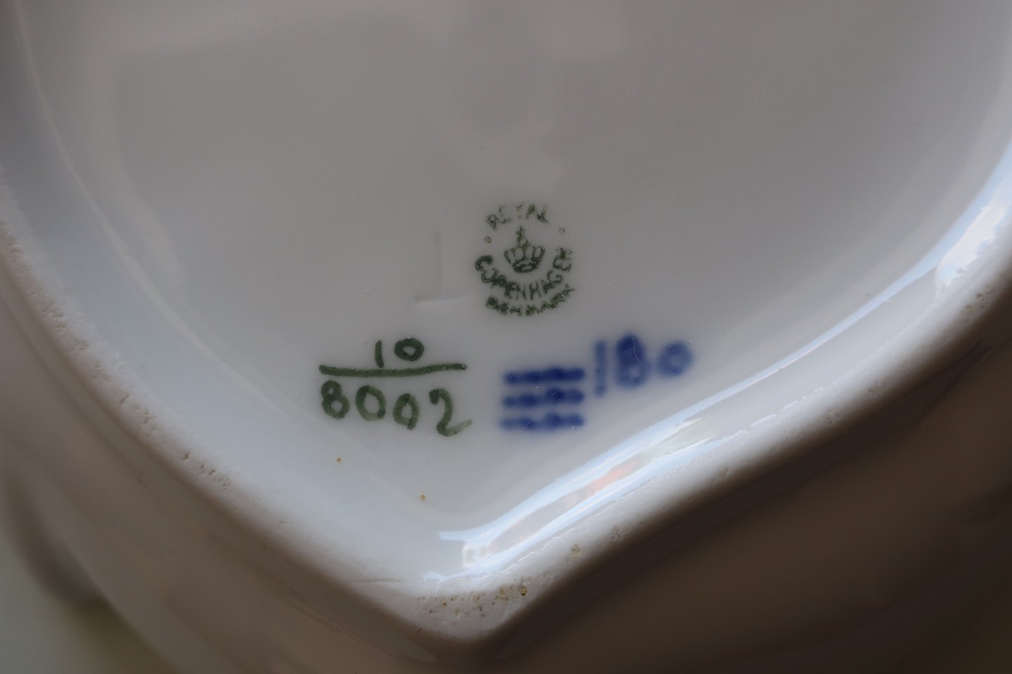 Royal Copenhagen (RC) (blad-)fad Blå blomst 1. sortering NR.: 10/8002 L: 23cm B: 18cm Flot stand Varenr.: KM1005