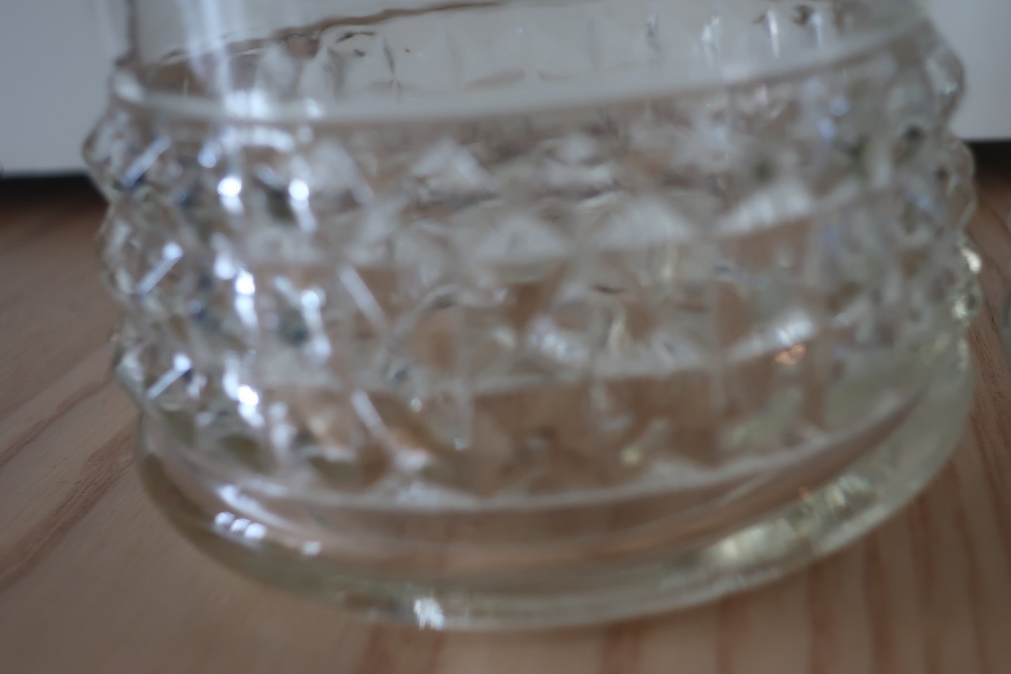 Antikt gele-/marmelade glas med smuk "krydsfod" H