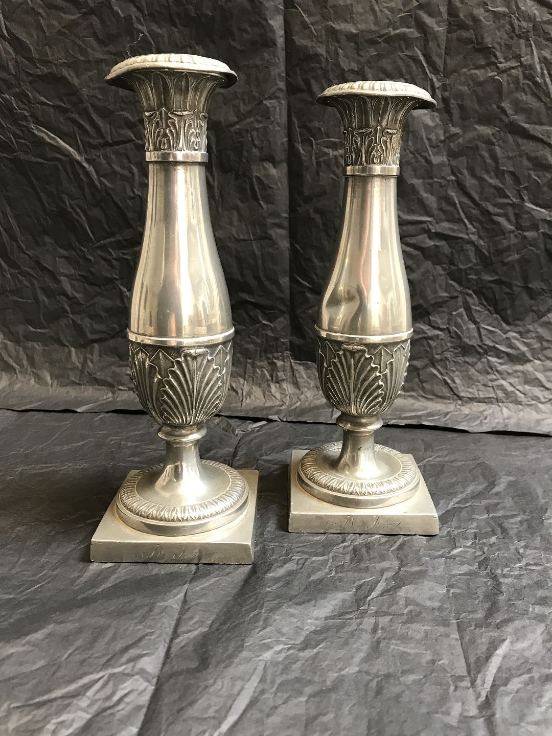 Pair of Pewter Candlesticks , ca 1820 - 40
